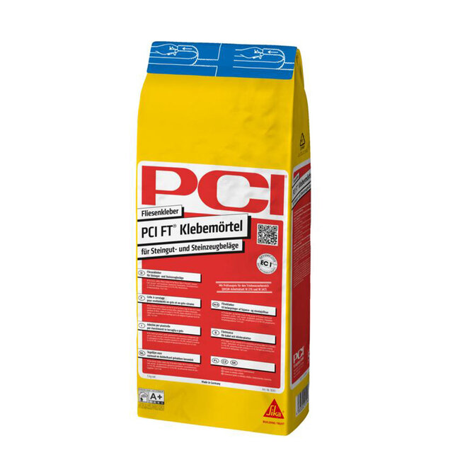Handige 5 kg verpakking voor de kleine tegelklusjes. De PCI FT Klebemortel is een tegellijm speciaal voor hard- en dubbelhard gebakken keramiek. Deze tegellijm kan zowel binnen als buiten worden gebruikt, op de wand en op de vloer. PCI FT Klebemortel is universeel voor hardgebakken en dubbelhard gebakken keramische tegels.
