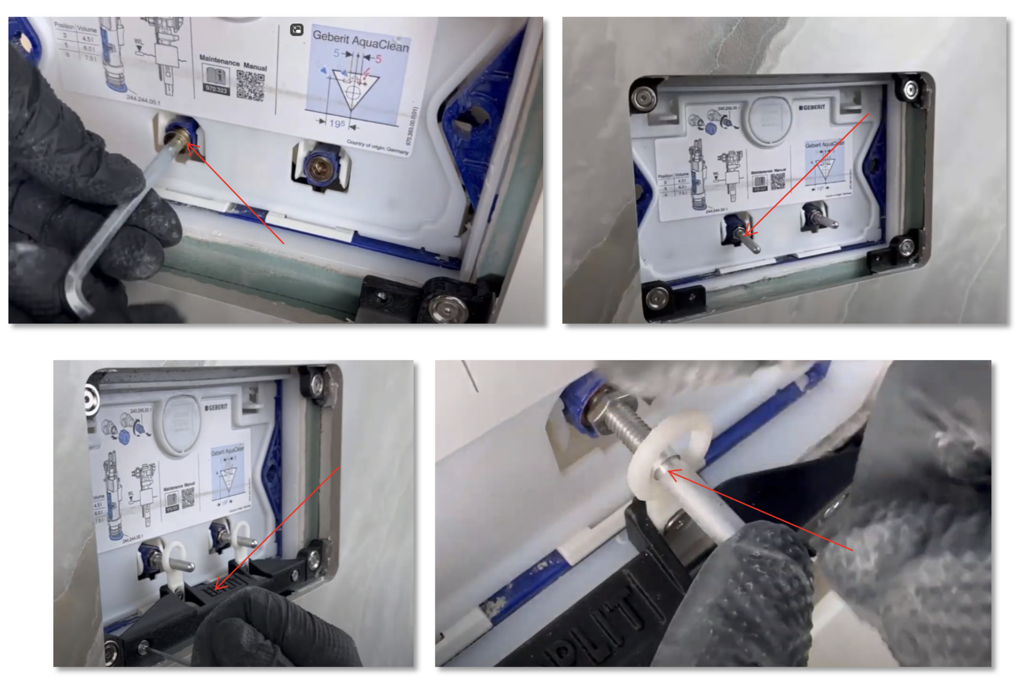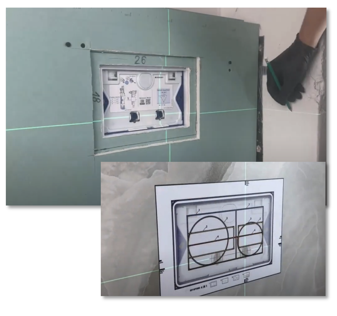 Afwerking, bijstellen en onderhoudDe afgewerkte druktoets kan nu in zijn geheel teruggeplaatst worden. De magneten zorgen ervoor dat de druktoets stevig en precies op zijn plek blijft zitten. Voel met je hand over de omliggende tegel en de druktoets om te controleren of alles mooi vlak ligt. Als er hoogteverschil voelbaar is, kun je dit eenvoudig corrigeren. Gebruik hiervoor de meegeleverde inbussleutel om de magneten aan de binnenzijde iets in of uit te draaien, zodat je een strak en gelijk oppervlak krijgt. Wil je de druktoets later afstellen, schoonmaken of bijvoorbeeld het waterreservoir bijvullen voor een AquaClean, dan kun je de druktoets er met de bijgeleverde tool eenvoudig weer in zijn geheel uithalen. |